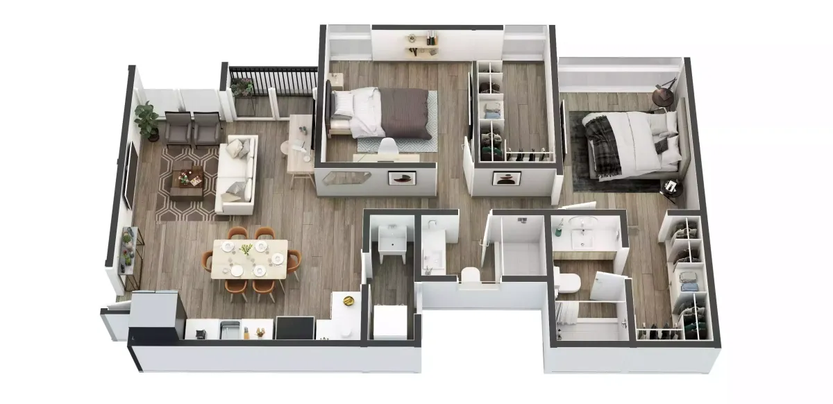 2 habitaciones con walk-in closet