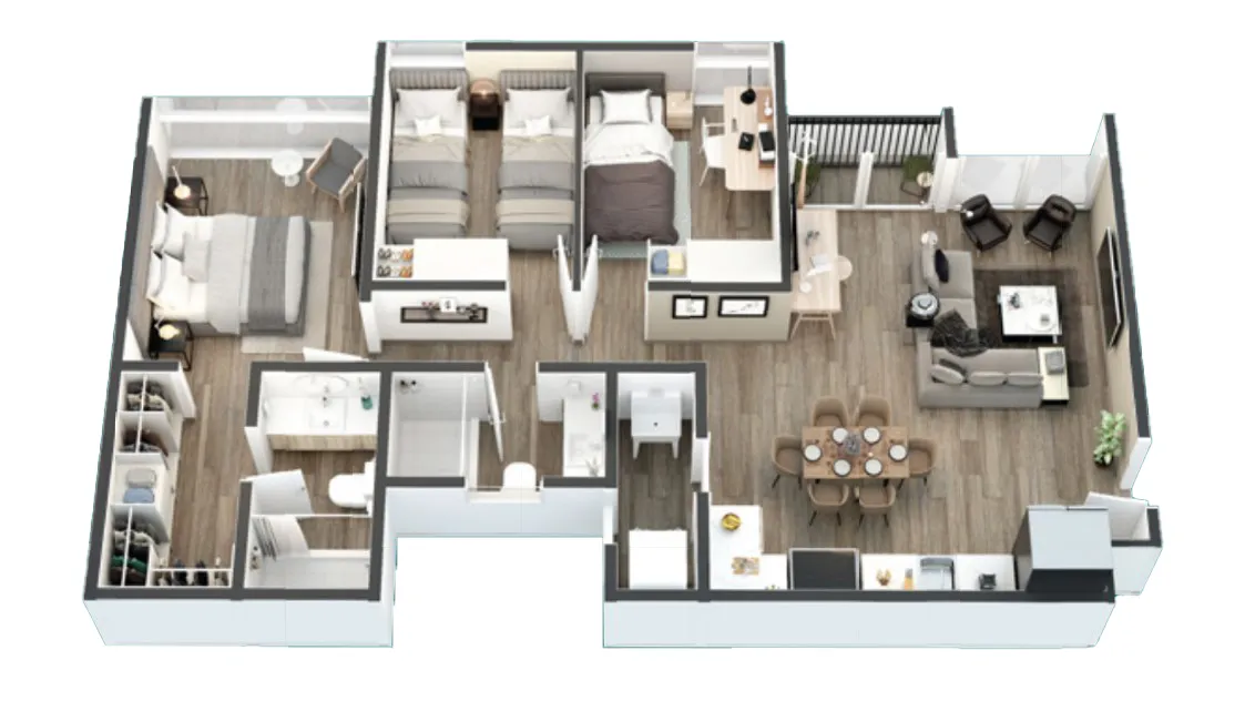 3 habitaciones con walk-in closet